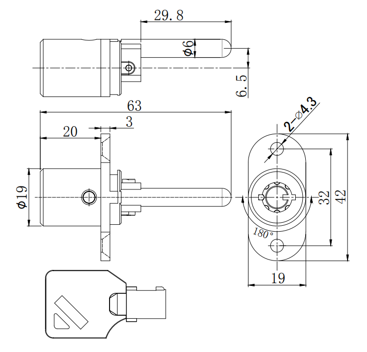 1.180°旋轉(zhuǎn)實(shí)現(xiàn)開啟或關(guān)閉,不留匙。