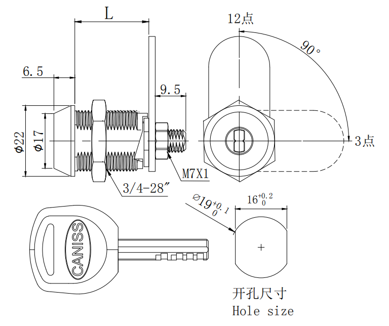 1.180°旋轉(zhuǎn)實(shí)現(xiàn)開啟或關(guān)閉。鑰匙在12點(diǎn)位置拔出。