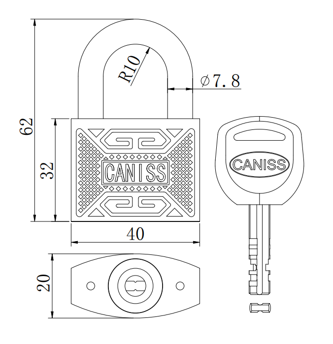 材質(zhì):鋅合金鎖體、鎖芯。加硬鎖鉤。