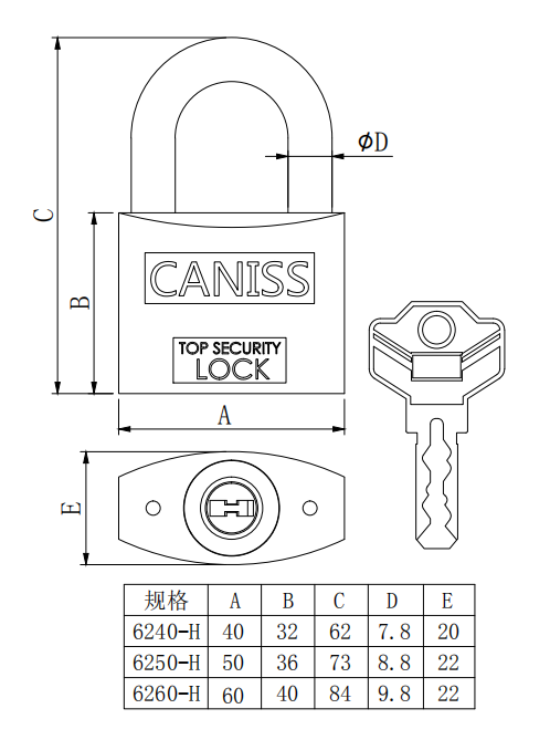 材質(zhì):鋅合金鎖體、鎖芯。加硬鎖鉤。