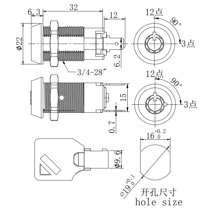 1.90°旋轉(zhuǎn)實(shí)現(xiàn)開啟或關(guān)閉,可選是否留匙。