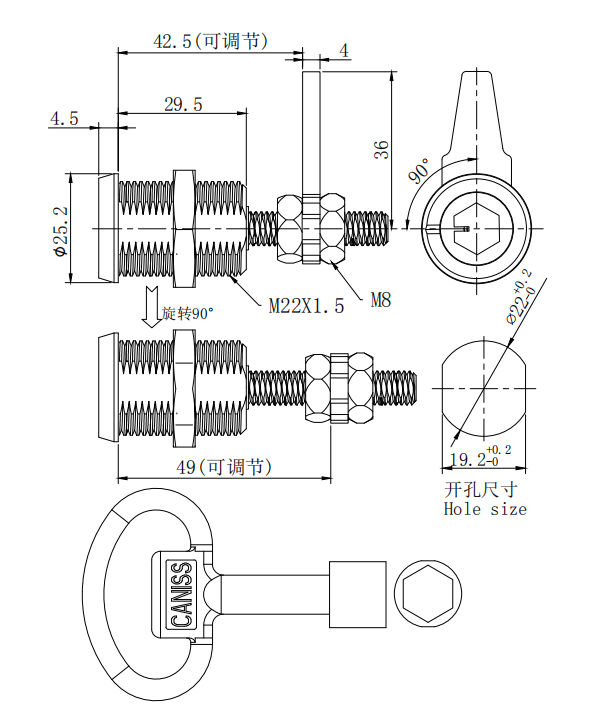1.Key turn to C.W position to open,turn to Anti-Clock position to closed.