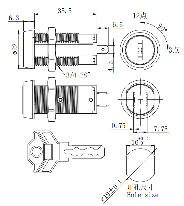 1.Key turn to 90dx,can pull out on 12 O’clock.