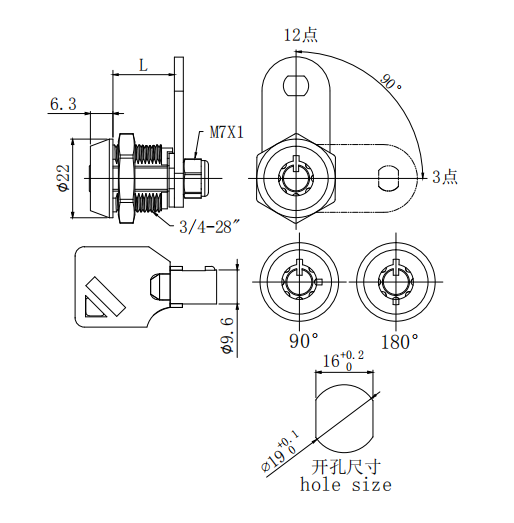 1.Key turn to 90dx or 180dx,can stay in lock or pull out.